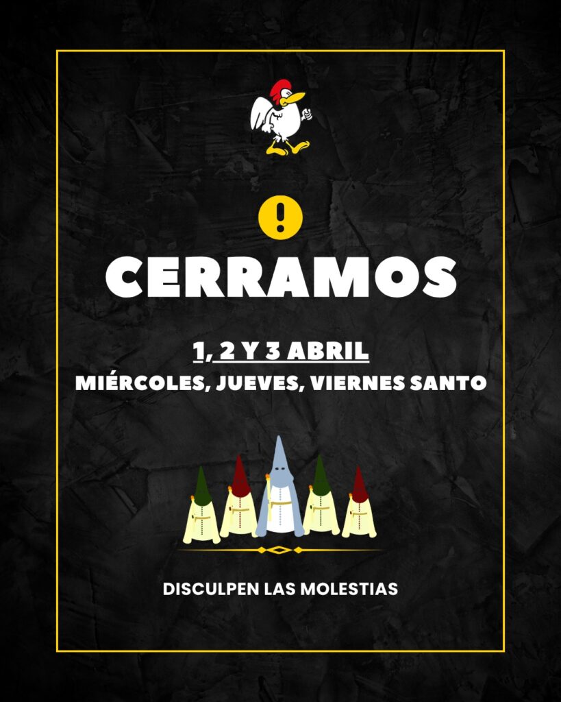 Cerramos 5,6 y 7 Abril (Por Semana Santa)